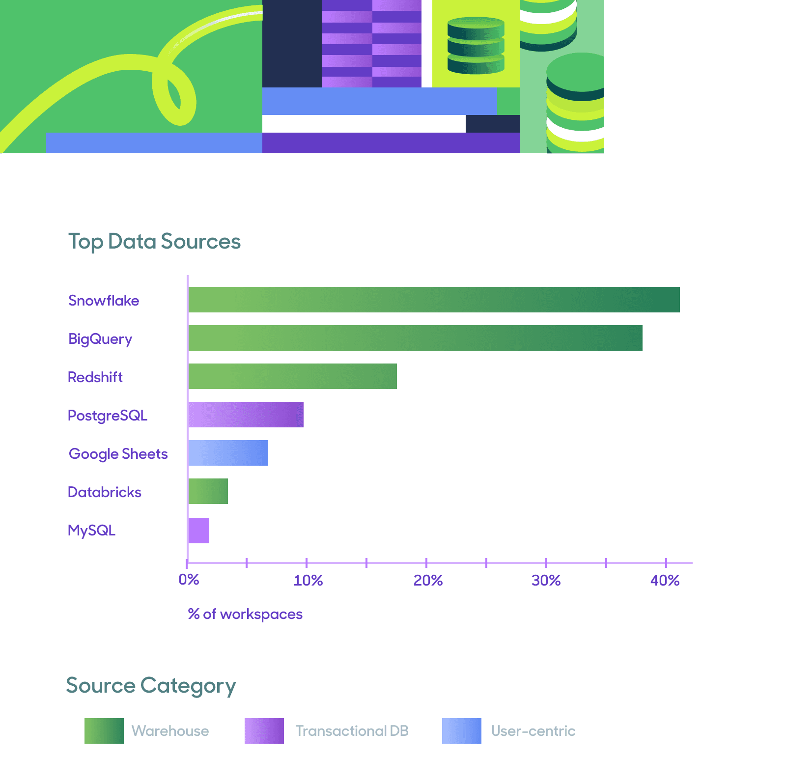 This exercise got us thinking…we’re sitting on some pretty one-of-a-kind data ourselves that unearths a lot of interesting industry trends. Namely: the state of data activation (and really, how today’s organizations are bringing data teams and business teams together with actionable data). Below are some snapshots of where the industry sits today and how Hightouch is building a future where anyone can take action on their data. It’s truly incredible to witness the ways you are all pushing the bar with data activation, and we remain humbled by the creative ways you’re moving beyond BI to bring actionable data to your organization.