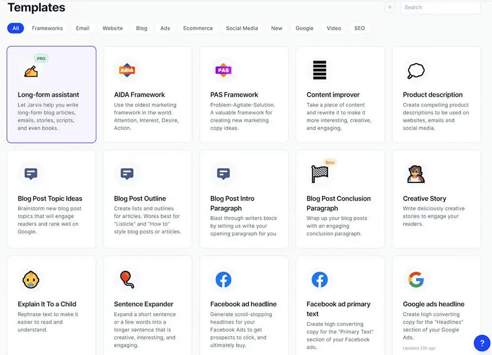 Jasper specializes in recreating your brand voice to generate various content types, such as blog posts, landing pages, and case studies. Jasper uses your company’s knowledge base, your historical campaign data, and any real-time market trends to reproduce your brand voice depending on whether the message comes from the CEO, is an announcement, or is intended for social media. Jasper’s AI features save time by automating tasks and generating consistent, on-brand content that enhances customer experience.