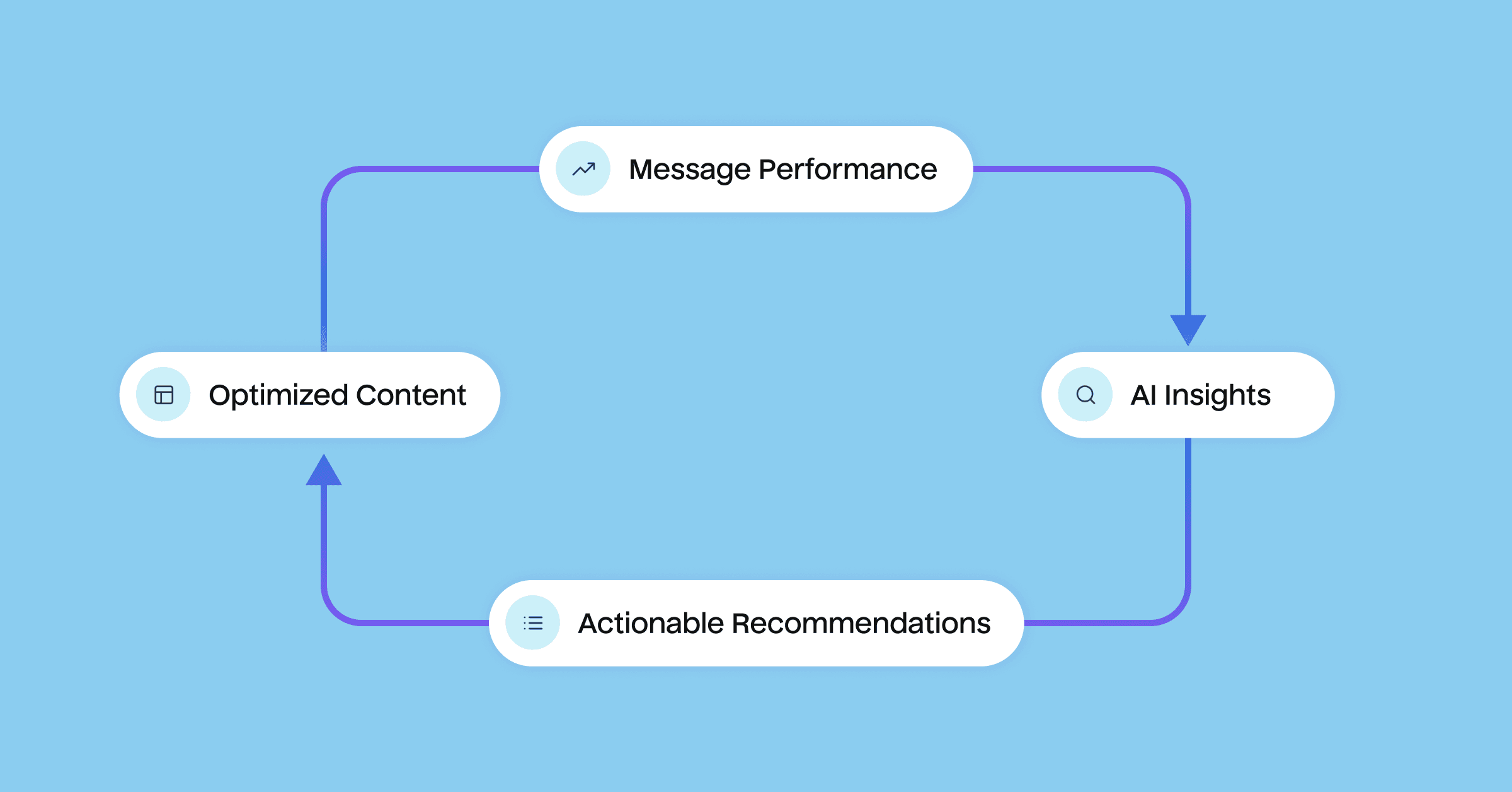 Think of it as your AI-powered creative strategist. It evaluates new content before it goes live, monitors performance patterns across all your messages, and recommends what content to create next.