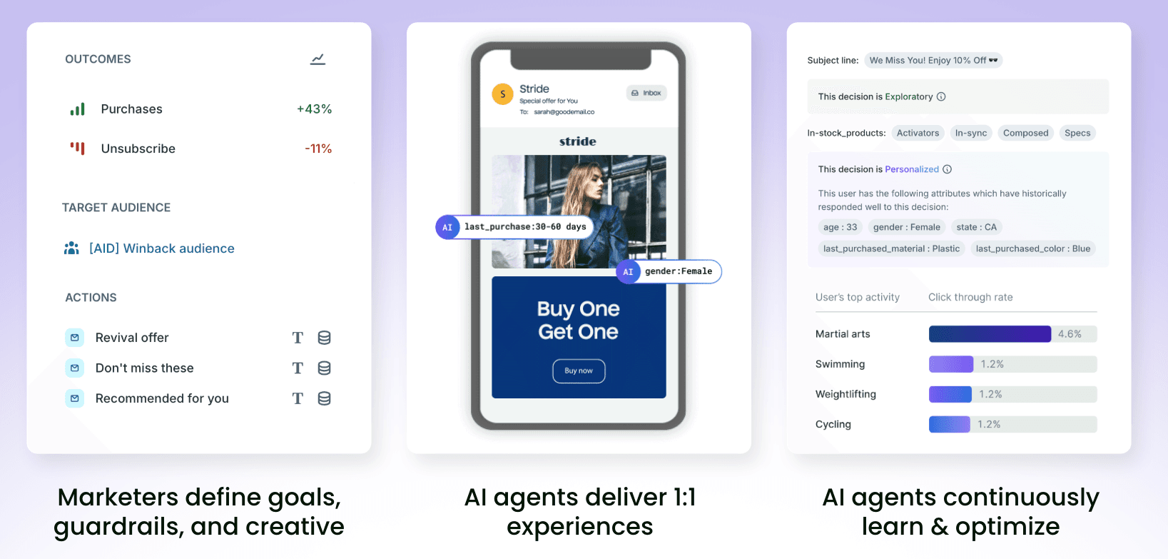 Every organization dreams of personalizing content and offers at the 1:1 individual level, and martech has promised this for decades. Hightouch’s AI Decisioning uses data from the warehouse and reinforcement learning to test and deliver personalized content. While Hightouch’s AI Decisioning engine can determine what content each user should see, it leverages ESPs like Adobe Campaign to provide the personalized content to each user. Hightouch’s AI Decisioning platform integrates with Adobe Campaign messaging templates via APIs to dynamically personalize messages for each recipient.