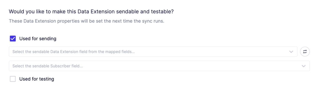 Salesforce Marketing Cloud Data Extensions: You can now configure whether your SMFC data extensions are sendable or testable.