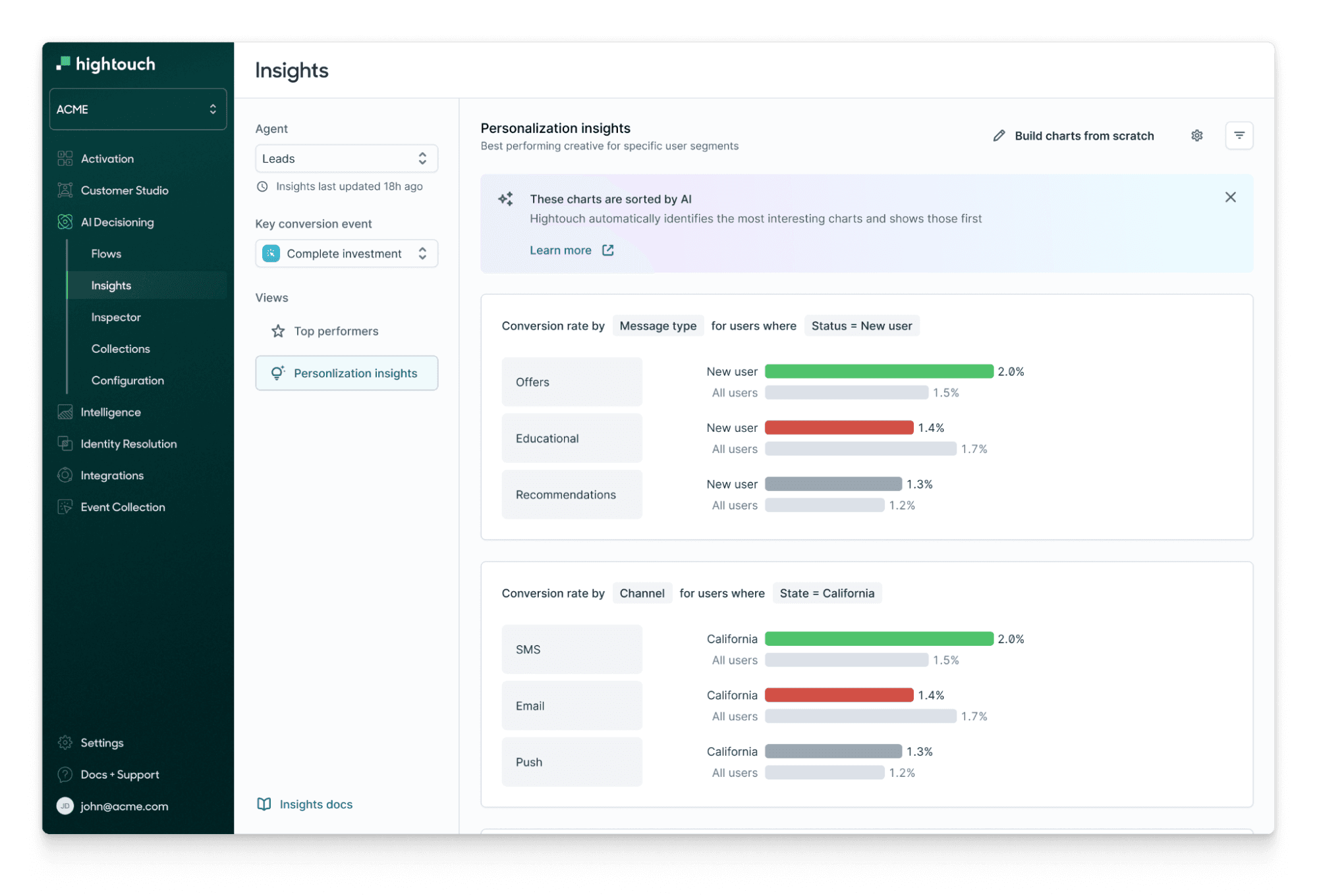 - Personalization insights: Your best-performing actions (such as messages and timing decisions) for specific user segments