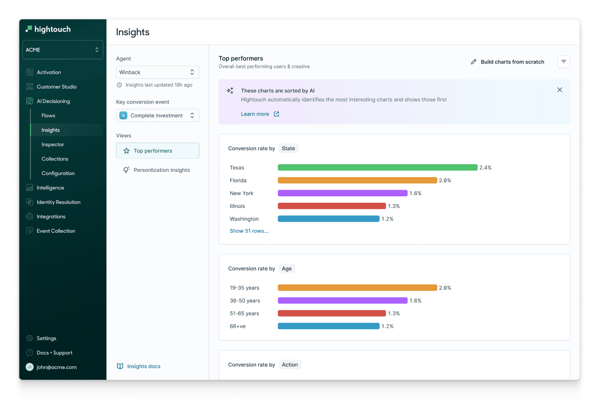 Marketers gain unprecedented visibility: You see what’s working, with whom, and why. These findings uncover customer patterns and preferences that would remain hidden without the experimentation scale of AI Decisioning, building a foundation for more informed strategic decisions.