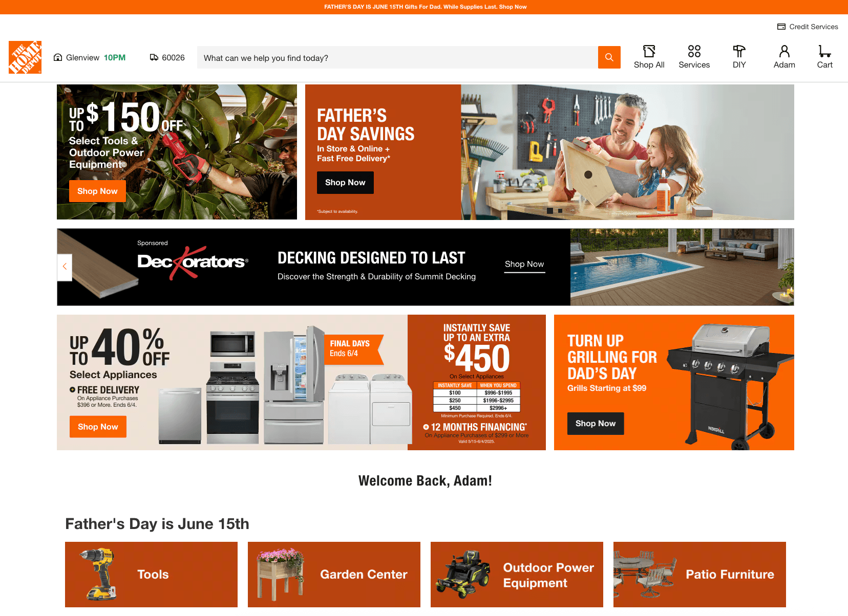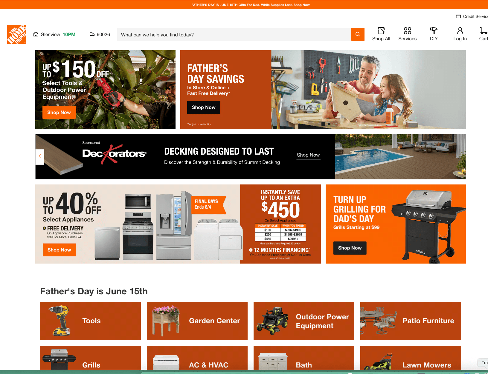 For example, this week I visited the Home Depot website. When I arrived, Home Depot didn’t know who I was since it had been a while since I had visited the site, and no cookie remained. Since my browser had permission to share my location, all Home Depot knew was that I lived in the Chicago suburbs. Here is what I saw: