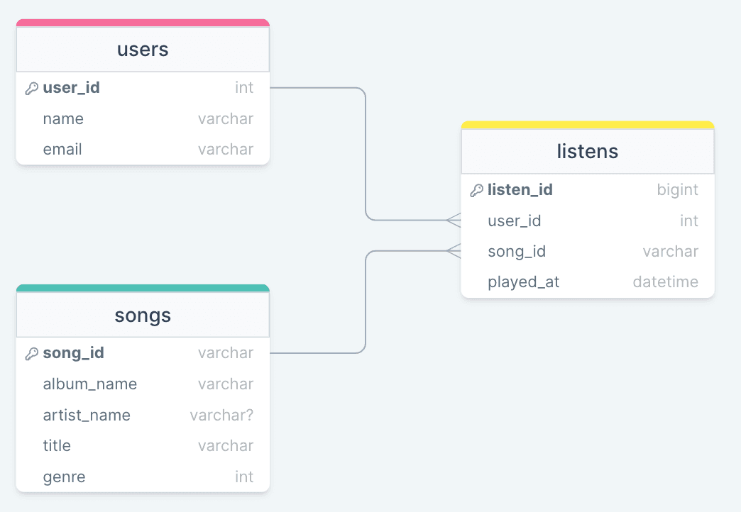 userstable, alistenstable, and asongstable (see the below image for an example of how these should join) - You have a Composable CDP like Hightouch to activate the data from your warehouse to various marketing tools
