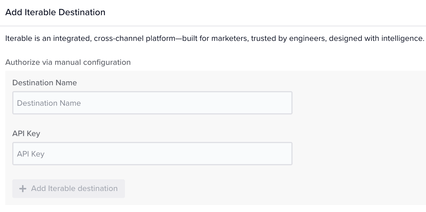 If your Iterable destination has not been configured yet, you can follow these quick steps to create an API key and input it into Hightouch.